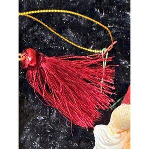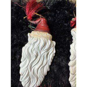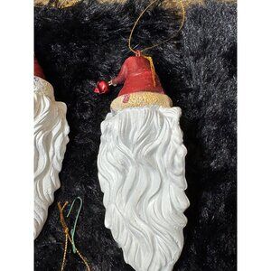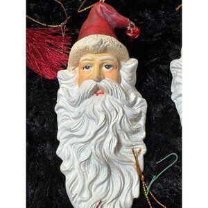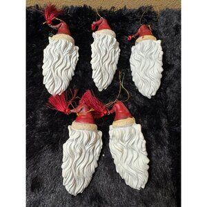 Vintage Handcrafted Santa Claus Ornament Set Of 5 With Red Hats & White Beards