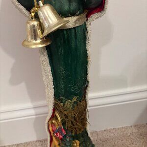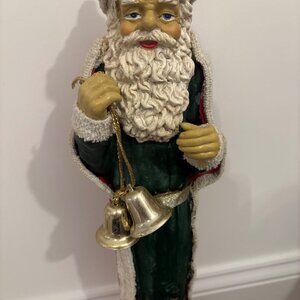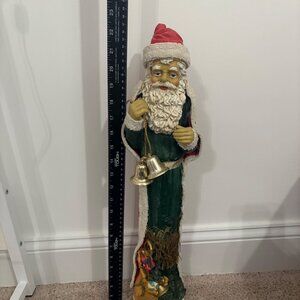 Vintage Handcrafted Santa With Bells & Toy Bag 22” tall 4” across Pencil Style