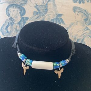 Vintage Handcrafted Shark teeth name choker, in Blue and Ivory, Unmarked