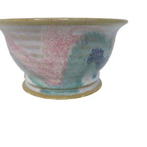 Vintage Handcrafted Signed Art Pottery Stoneware Bowl Multicolor Pastels Glazed