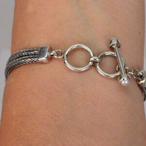 Vintage Handcrafted Sterling Silver Bracelet w Lemon Citrine Pearl Toggle