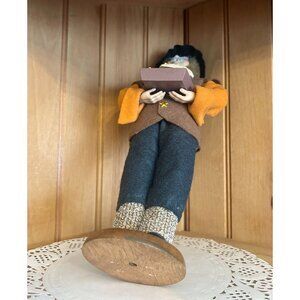 Vintage Handcrafted Thanksgiving Pilgrim Caroler Doll Figurine Bread Tray Felted