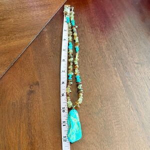 Vintage Handcrafted Turquoise Pendant Necklace 20” Natural Stone Beads Boho