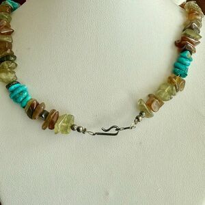 • Beads: Earth-toned chips in amber, beige, and hints of turquoise