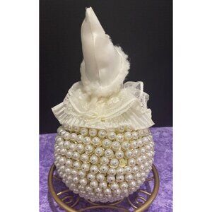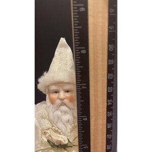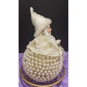 Vintage Handcrafted White Beaded Sequins Push Pin Christmas Round Large Santa