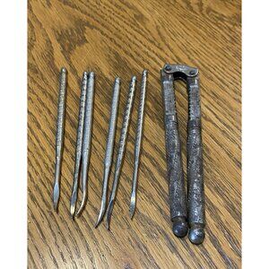 Vintage Handcrafted Wood Nut Cracker Bowl One Cracker 6 Picks W/Bark Brown 10”