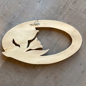 Oval Tan distressed wood with Welcome in green & pink & green tulips. 19.75” Wide x .75” Thick x 10.75” Height. Ready to hang with a hook on the back. Shabby Chic, French Country, Garden decor. Excellent Used Condition with no Flaws. Add some flair to your front porch!