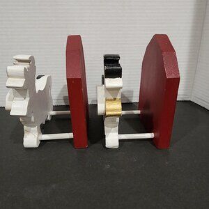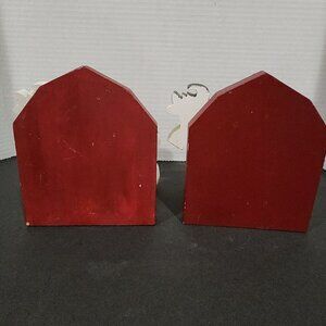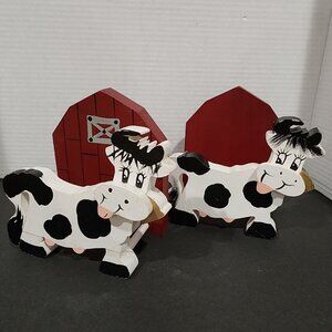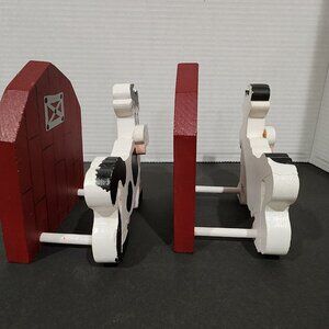 Vintage Handcrafted Wooden Cow & Barn Napkin Holder Figurine Farmhouse Set of 2