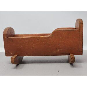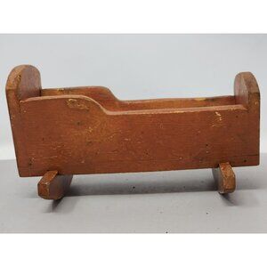Vintage Handcrafted Wooden Doll Cradle Small Brown Rocking Bed