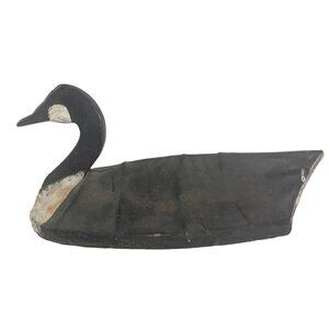 Vintage Handcrafted Wooden Goose Duck 3D Canvas Covered Black Decoy Decor OLD
