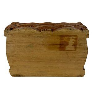This vintage wooden trinket box features intricate flower carving on the lid, offering a touch of natural elegance. Its compact design makes it an ideal storage solution for small items, while adding a rustic charm to your decor.