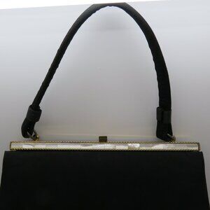 Vintage Handheld Black Satin Purse Bag After Five Mother Pearl Frame Top Handle