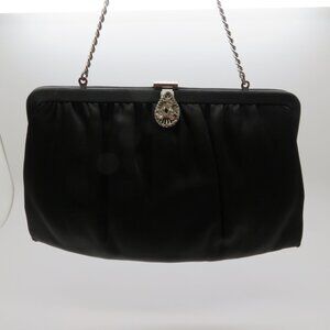 Unbranded Vintage Women Black Satin Clutch Purse Bag with Clasp Lock Silver Chain Handle. Satin material with rhinestone clasp closure. Frame is strong and clasp closes smoothly. A silver chain can be lifted out to convert clutch to a handheld purse. Vintage charm.