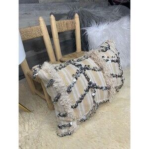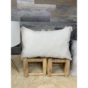 Experience the rich heritage of Moroccan culture with this authentic vintage Handira wedding blanket pillow.