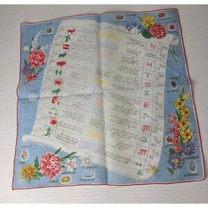 Vintage Handkerchief 1950’s Burmel Astrological Zodiac Signs chart floral 13 in