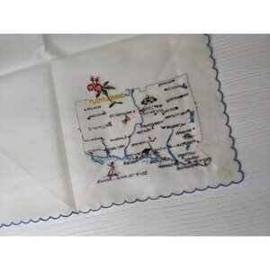 Vintage Handkerchief 1950’s Connecticut Stitched Scalloped Edge 11” Square