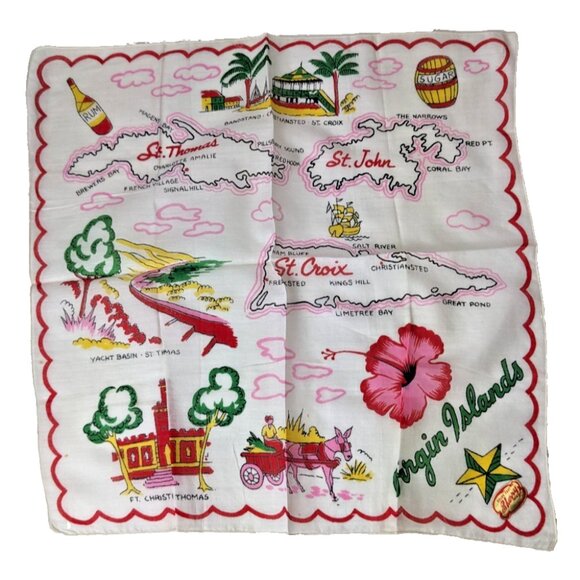 Vintage Handkerchief 1950’s Virgin Islands Souvenir St Thomas croix John 13” Sq