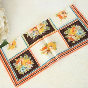 Charming vintage handkerchief with a lovely print of wild flowers in autumn colors all on a white background. Approx 11" square. No labels or marks. Perfect for any hankie collector.
