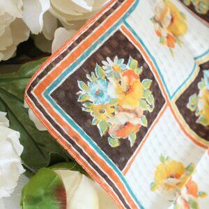 Vintage Handkerchief, Autumn Wildflower Floral Print Cotton Hankie