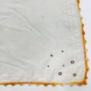 Vintage Handkerchief Embroidered Coffee Bean Orange Variegated Crocheted Edge