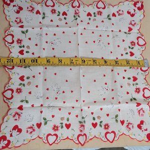 Vintage Handkerchief Lot of 3 Holiday Christmas Valentines Day Poinsettia Hearts