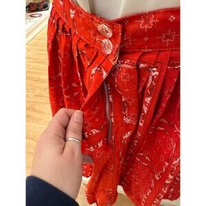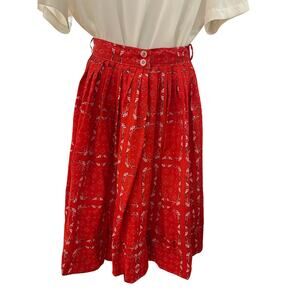 Vintage Handkerchief Red Cotton Skirt XS/Small 24 Waist
