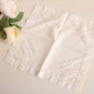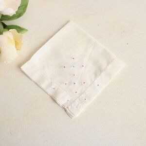 Vintage Handkerchief, White Linen with Pink and Blue Swiss Dots Embroidered