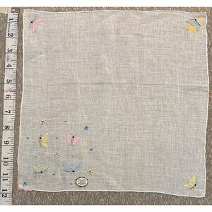 These vintage handkerchiefs feature delicate embroidery, showcasing floral and butterfly patterns. Crafted from soft cotton linen, they're versatile as a fashion accessory or collectible.