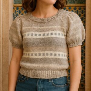 Vintage Handknit Ramie Blend Short Sleeve Sweater Women Medium Casual NWT