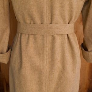 Vintage Handmade 100% Wool Button Down Oatmeal Belted Midi Shirt Dress Size S
