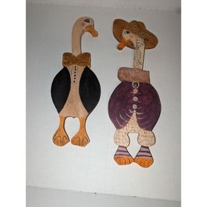Set of 2 Mr & Mrs Goose Handmade, Hand painted Vintage wall hangings