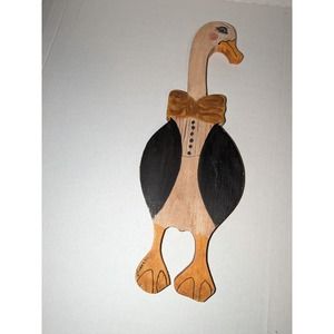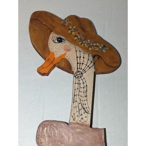 Vintage Handmade 17" Pair Farmhouse Carved Set Goose Painted Wall Hanging Duck