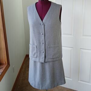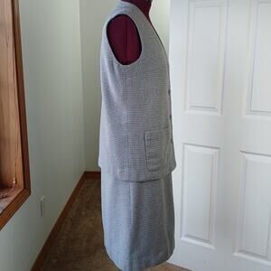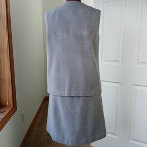 Vintage Handmade 2 Piece Suit 1X ? grey blue wool houndstooth vest skirt pockets