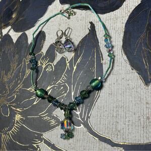 Vintage Handmade 925 Sterling Silver Blue Crystal Bead Necklace and Earrings D2