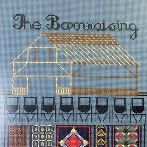 Spruce up your walls with this cross-stitch masterpiece of Amish folks raising a barn. It's like having a quilt and a barn party all in one.