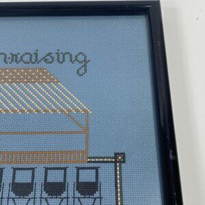 Vintage Handmade Amish Folk Barnraising Framed Cross Stitch 18.5"x14"