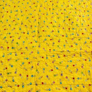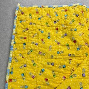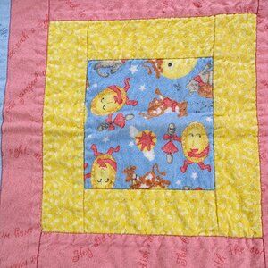 Vintage Handmade Baby Blanket Patchwork Quilt Nursery Rhymes Safety Pin Fabric