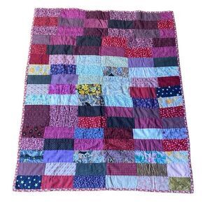 Vintage Handmade Baby Quilt clowns circus lap blanket 32x40