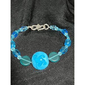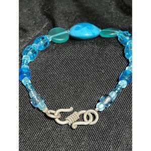 Vintage Handmade Beaded Seaglass Blue and Turquoise Bracelet