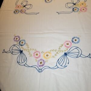 Beautiful handmade vintage bedspread featuring embroidered floral patterns in soft pastel tones. Measures approximately 72" x 80", with small fringe detailing along the top and foot of the bedspread, and larger fringe on side edges. See pictures for what fringes look like. Adds a cozy, vintage charm to any bedroom. Packaged and shipped carefully from a smoke-free environment. Check my feedback and other listings!
