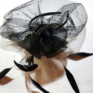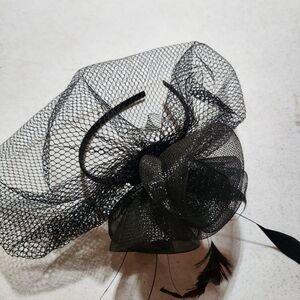 Vintage Handmade Black Veiled Embellished HeadBand with Feather
