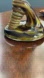 This vintage blown glass pen holder features a striking design characterized by vibrant swirling colors and elegant curves, typical of the craftsmanship that gained popularity in the late 1980s & remains in beautiful condition. The unique shape blends functional design with artistic expression, making it a favorite among desk accessories enthusiasts. Its smooth finish and intricate color patterns not only serve as a practical pen holder but also as a captivating decorative piece that appeals to art lovers and collectors alike. This item embodies a timeless charm that continues to fascinate all who appreciate the beauty in everyday objects. Something for the executive who has everything.