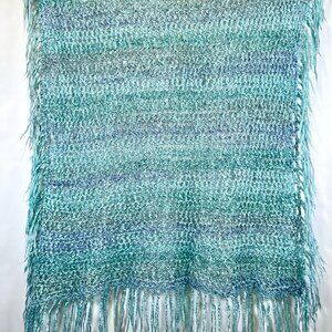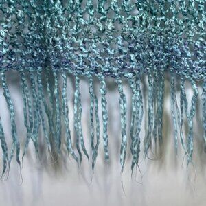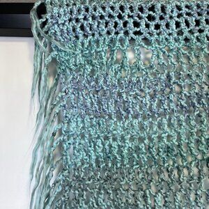 Vintage Handmade Blue Sully Open-Weave Fringe Throw Retro Accent Blanket Boho