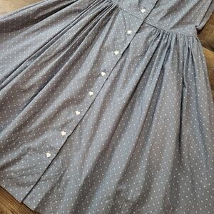 Vintage Handmade Blue & White Heart Detailing Embroidered Midi Dress Size Medium. This dress is one of my favorite finds! Absolutely adorable.