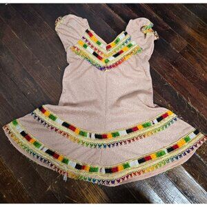 Vintage Handmade Bohemian Pink Glitter Embroidered Dress