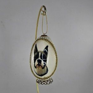 Vintage Handmade Boxer Dog Real Egg Christmas Ornament Signed 2001