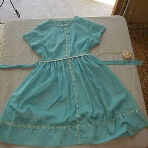 Vintage Handmade Bright Sea Blue with Floral Lace Trim Sz S Dress