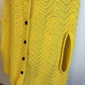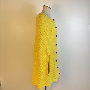 Vintage Handmade Button Up Knit Crochet Sweater Cape Poncho Womens OS Arm Holes