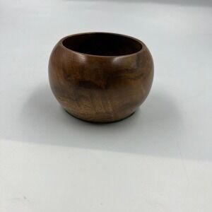 Vintage Handmade Calabsah Bowl Salt Dish Serving Wooden 5 Inch MCM Oil Rubbed