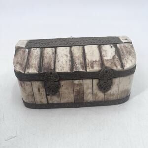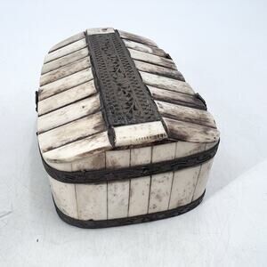 Vintage Handmade Camel Bone Hinged Jewelry Trinket Box